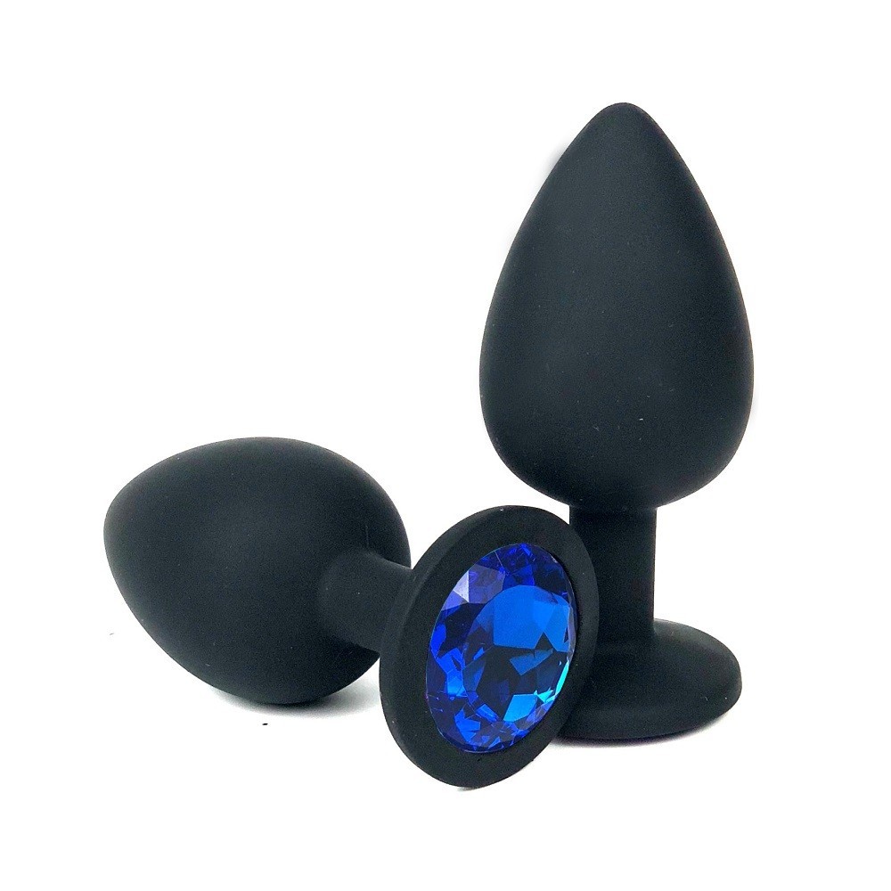 Анальная пробка черный силикон синяя страза 8см/3,4см