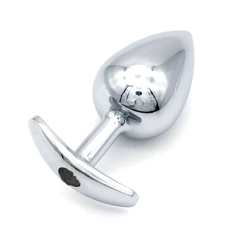 Анальная пробка для ношения серебро метал черная страза 8см/3,7см