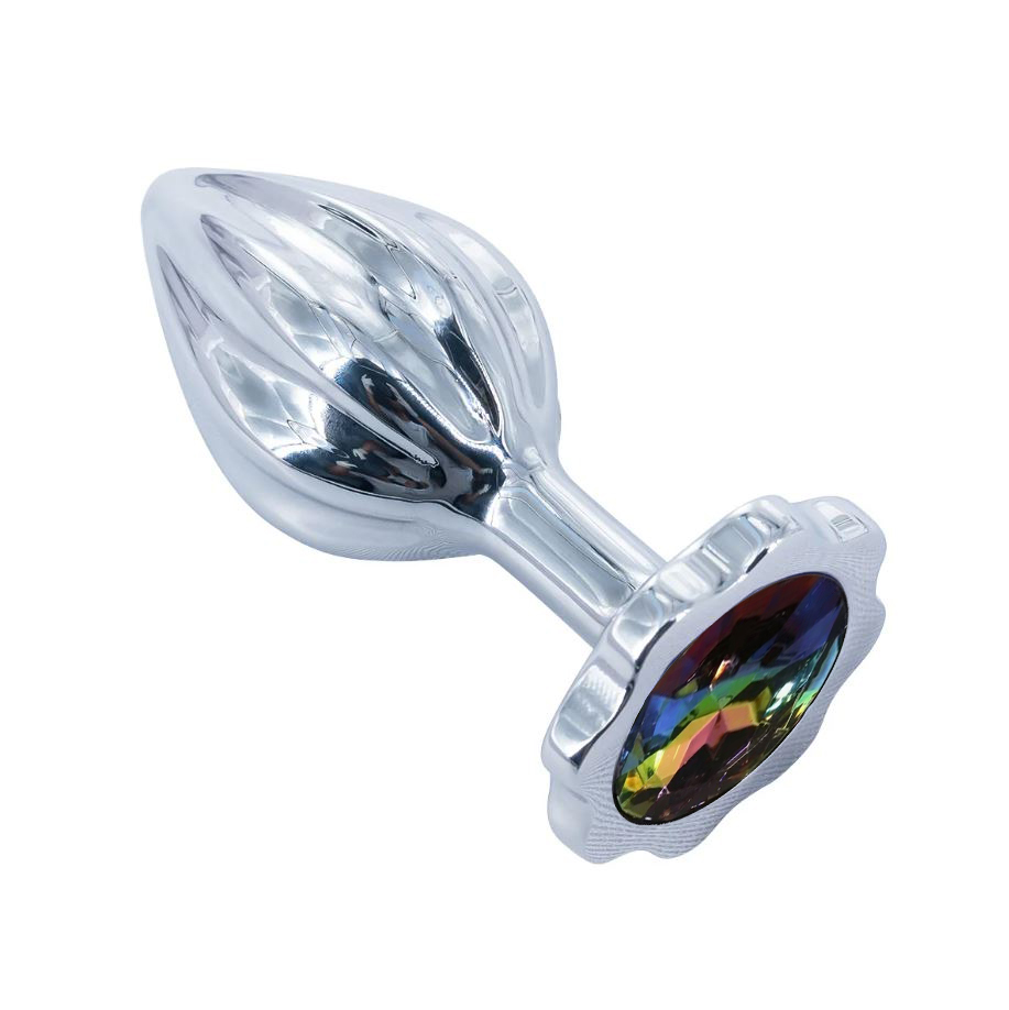 Анальная пробка рельефная с разноцветной стразой, S
