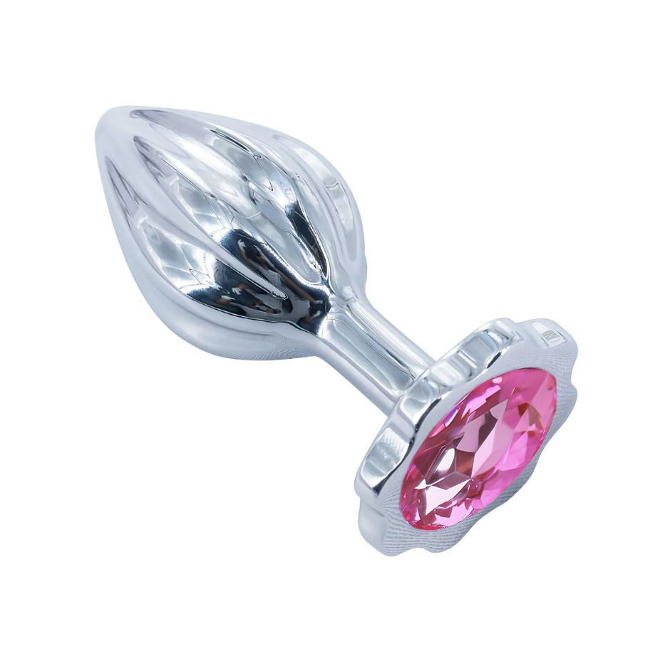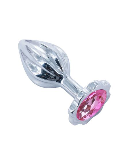 Анальная пробка рельефная с розовой стразой, M