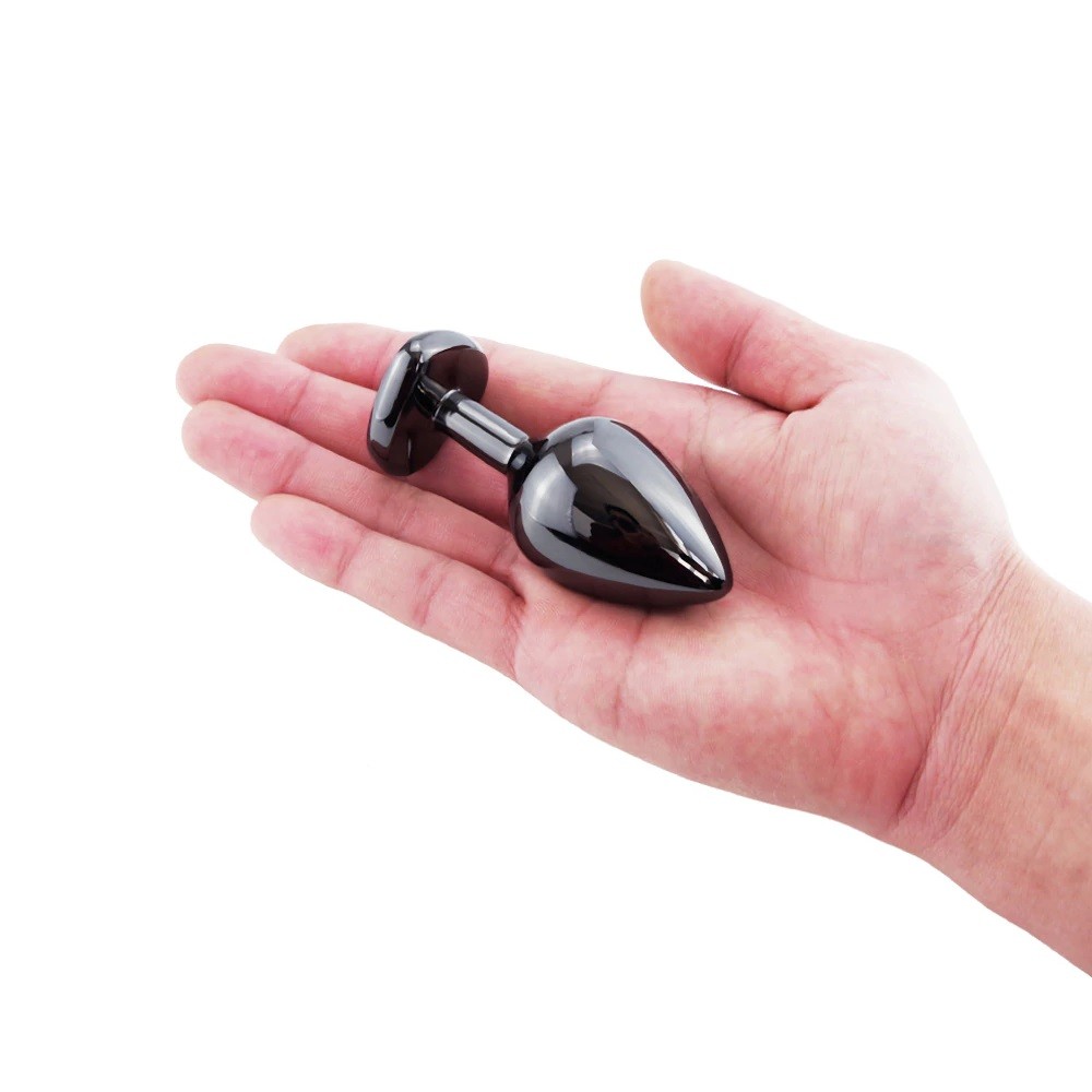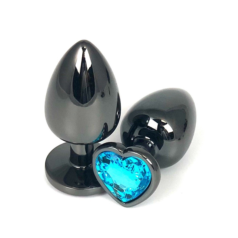 Анальная страза темный метал голубая страза 8,3см/3,3см