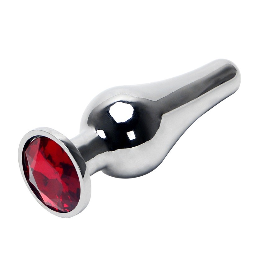 Анальная страза вытянутая серебро метал красная страза 13см/4,2см