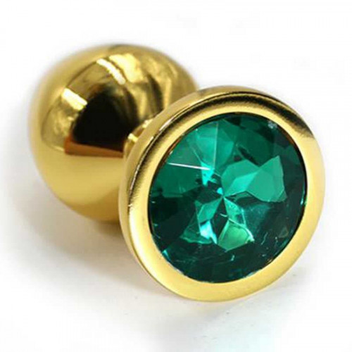 Золотая анальная пробка с темно-зеленым кристаллом (Small)