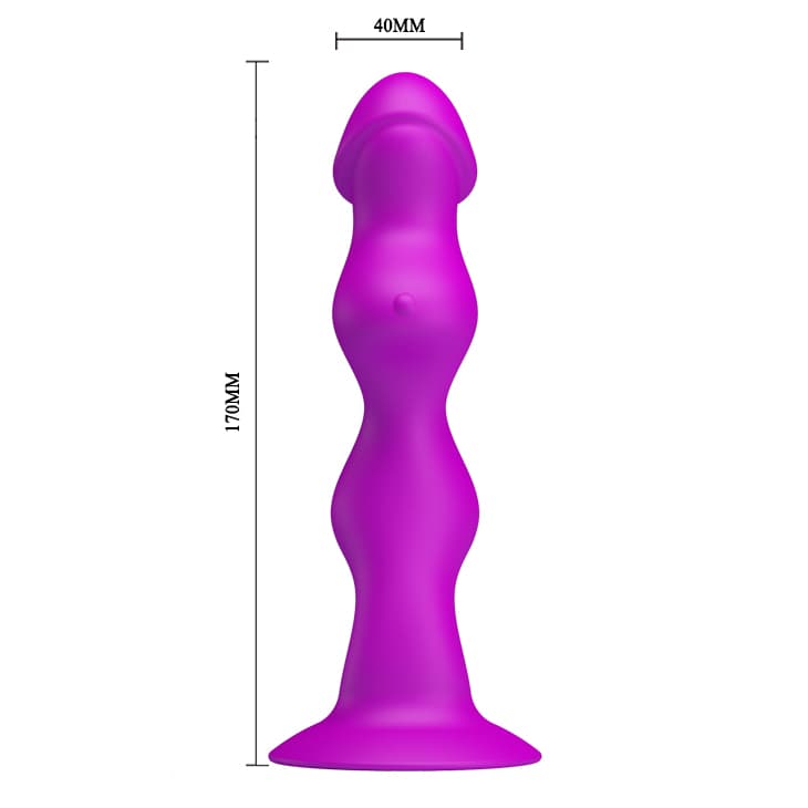 Фаллоимитатор 2 в 1, анально-вагинальный. На теле стимулятора есть 3 рельефных изогнутости для массажа стенок ануса и головка анатомической формы для стимуляции точки G. Такая форма массажера позволяет максимально сильно стимулировать стенки ануса. Имеет в основании присоску, что позволяет использовать его на любой гладкой поверхности без помощи рук (так называемые свободные руки).
