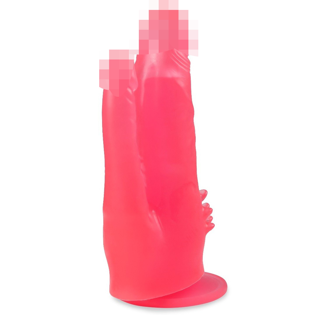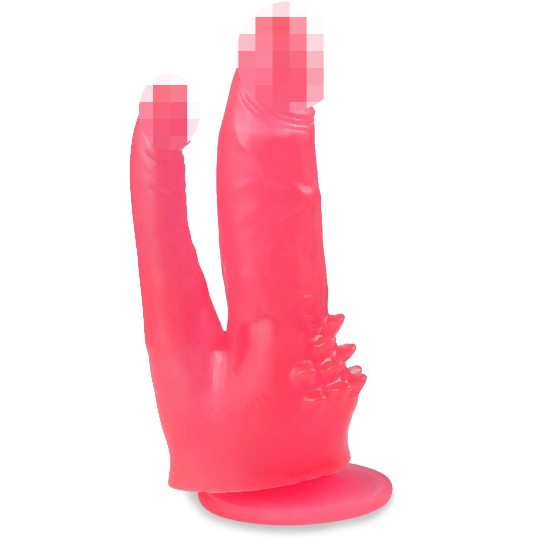 Фаллоимитатор выполнен в виде двух фаллосов различного диаметра, которые соединены между собой одной мошонкой.