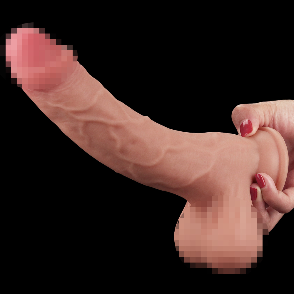 Очень реалистичный фаллос не только по своему виду, но и благодаря новой методике от компании LoveToy. В новой линейке изделий Sliding Skin Dual Layer Dong использована технология двухслойного материала. Упругий и твердый стержень помещен в мягкий и скользящий материал. Благодаря чему верхняя часть, как кожа пениса может двигаться вперед назад. Такая конструкция дарит полное ощущение Iifelike – обладания эрогированным членом.