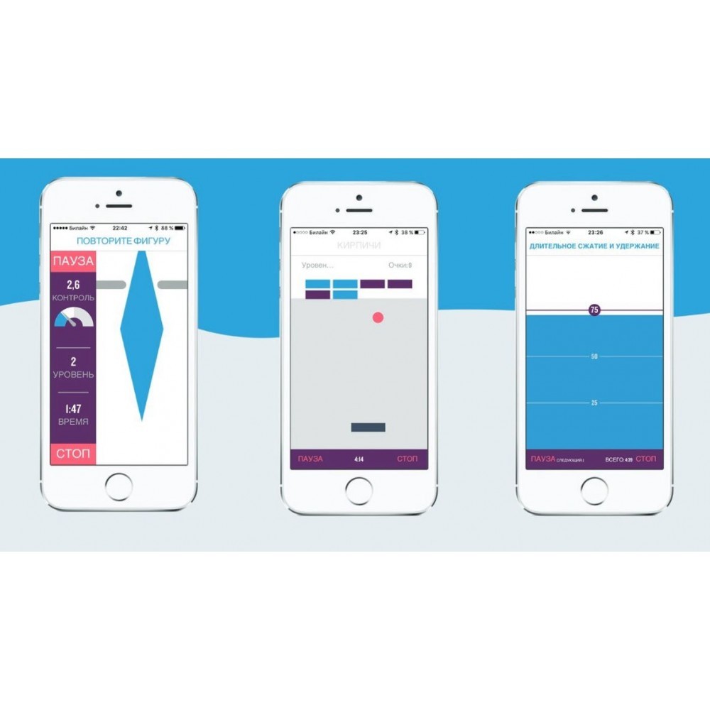Три программы тренировки, разработанные в виде игр, направлены на развитие трех показателей интимной мускулатуры: сила, выносливость и контроль. Врачи считают, что игровая форма тренировок помогает женщинам психологически расслабиться и мотивировать себя на регулярные занятия.