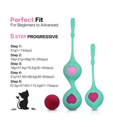 Шарики вагинальные Grace разновесные в наборе. Набор вагинальных шариков со смещенным центром тяжести для тренировки мышц тазового дна. Предназначены для неинвазивного лечения слабого мышечного контроля, приводящего к частому мочеиспусканию, недержанию мочи и низкой сексуальной удовлетворенности. Разный вес шариков предполагает выполнение курса тренировок от простых к более сложным упражнениям. Цвет шарика соответствует его весу. Силиконовые чехольчики с милыми сердечками (одинарный и двойной) - предназначены для удобства введения и извлечения шариков из влагалища. Вес шариков - 18, 31, 57,6 и 57,6 гр. Длина двойного чехла - 18,5 см. Длина одинарного чехла - 13 см.