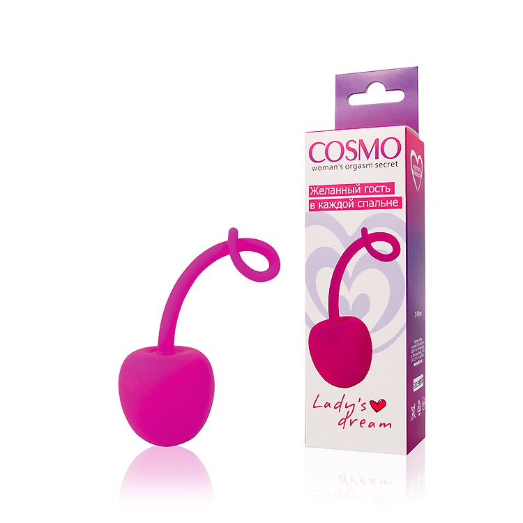 Вагинальный шарик для тренировки мышц половых органов (вумбилдинг) со смещенным центром тяжести внешне напоминает аппетитную вишенку. Нежный розовый цвет, приятная на ощупь бархатистая поверхность, простота в эксплуатации сделает упражнения более приятными. Изделие диаметром 40 мм изготовлено из гипоаллергенного материала – силикона, который совершенно безопасен для организма человека. Игрушка снабжена шнурком-хвостиком, способствующим легкому извлечению. Наличие внутри этого компактного эротического аксессуара перекатывающегося во время движения шарика меньшего размера позволит получить хороший результат даже тем, кто только начинает практиковать вумбилдинг. Систематические тренировки с помощью вагинального шарика 'COSMO' укрепят мышцы половых органов, повысят упругость и эластичность стенок влагалища. В результате занятий вумбилдингом вы сможете поднять свои интимные отношения на новый уровень.