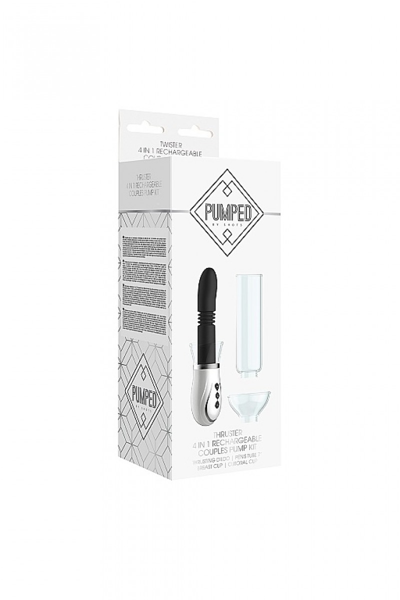 Набор Thruster 4 in 1 Rechargeable Couples Pump KitЖелаете найти идеальную секс-игрушку, которая удовлетворит сразу все ваши сексуальные фантазии? Тогда обратите внимание на невероятный, многофункциональный набор Thruster 4 in 1 Rechargeable Couples Pump Kit, который состоит из основания и сменных насадок и может заменить целую полку секс девайсов:ручная секс-машина,помпа для члена,помпа для клитора и сосков,помпа для вульвы игруди.Он сумеет возбудить, усилить чувственность, пробудить желание. Легко доведет до оргазма женщину и ее мужчину. Поможет повысить потенцию, увеличить половой орган мужчины, продлить эрекцию. Сделает секс безупречным на любом этапе от прелюдии и до оргазма!Кому стоит купить набор?Набор выбирают пары, которые предпочитают стильные, технологичные гаджеты и аксессуары, любят практичность, многофункциональность. Они всегда за эксперименты, изучение своего тела, за максимальное удовольствие, невероятные оргазмы, постоянное совершенствование любовной игры!Также Thruster 4 in 1 Rechargeable C
