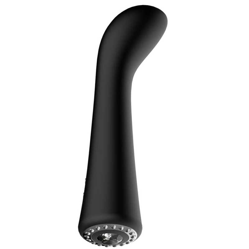 Вибратор Direction G-Spot Glimmer выглядит строго и очень элегантно. Черный цвет корпуса как нельзя лучше гармонирует с изящными линиями игрушки, придавая ей роскошный, просто шикарный вид. Это ультрасовременный аксессуар для вагинальной стимуляции, сделанная из очень качественных материалов. Поверхность покрыта нежнейшим бархатистым силиконом, крайне приятным наощупь и обладающим высокими гипоаллергенными свойствами. Изогнутый ствол имеет крупную, немного наклоненную в сторону головку, удобную для стимуляции точки G. Ею удобно водить по внутренней поверхности влагалища, либо переходить на клитор и половые губы, вызывая все новые и новые сладострастные ощущения. Внутри установлен отличный бесшумный мотор с 10 различными программами стимуляции. Основание аксессуара украшено россыпью белых стразиков. образующих кольцо. В центре установлен более крупный, похожий на бриллиант, страз, выполняющий функцию клавиши активации. Для питания используется аккумулятор, который заряжается по USB. Полной зарядки хватает прим