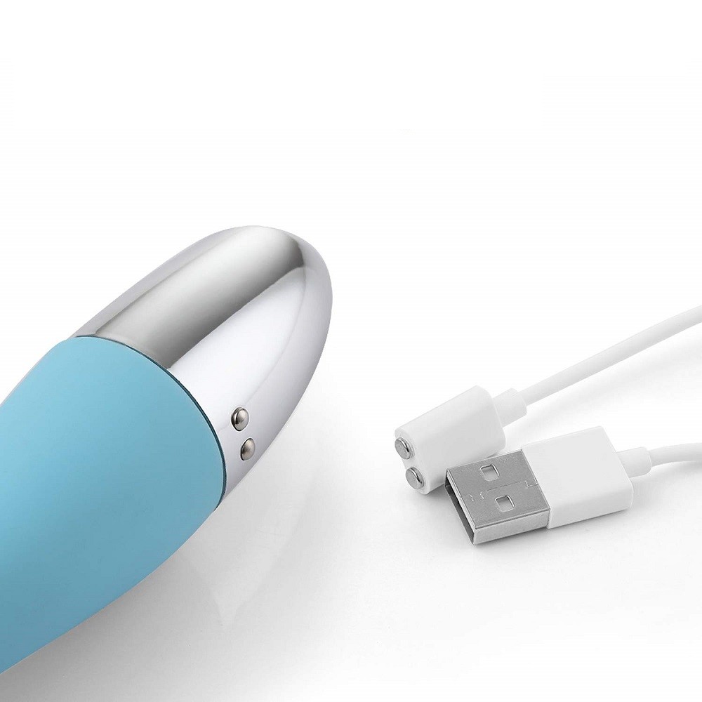 Вибратор перезаряжаемый и абсолютно водонепроницаемый. Индукционное (магнитное) зарядное устройство с USB разъемом входит в комплект.