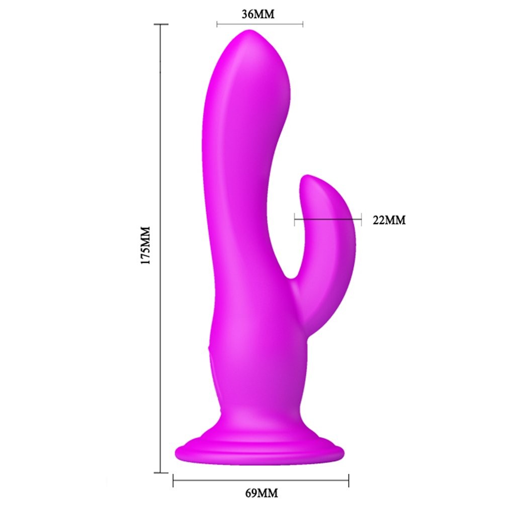 Оснащен тихим мотором с 7 режимами вибрации. Имеет в основании присоску, что позволяет использование на любой гладкой поверхности без помощи рук, так называемые (свободные руки).