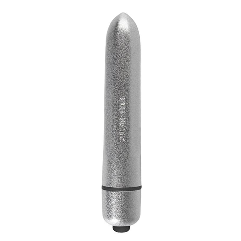 Элегантная вибропуля Fun silver в корпусе серебристого цвета с 16 режимами вибрации. Пуля обладает от легкой до мощной вибрации. Режимы переключаются с помощью кнопки на корпусе. Пуля обладает защитой от брызг, соответственно ей можно пользоваться в душе. Работает от 1 мизинчиковой батарейки ААА.