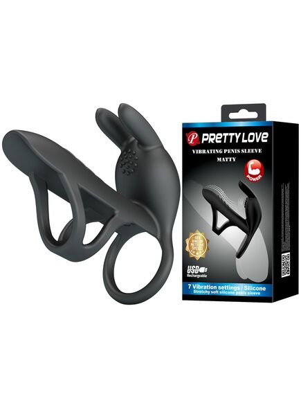 Эрекционное кольцо с вибрацией и отростком для стимуляции клитора "Matty"