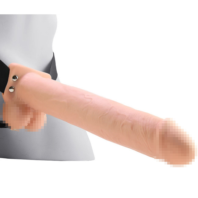 Телесный перезаряжаемый фаллопротез11 Hollow Rechargeable Strap-on with Balls - 30 см