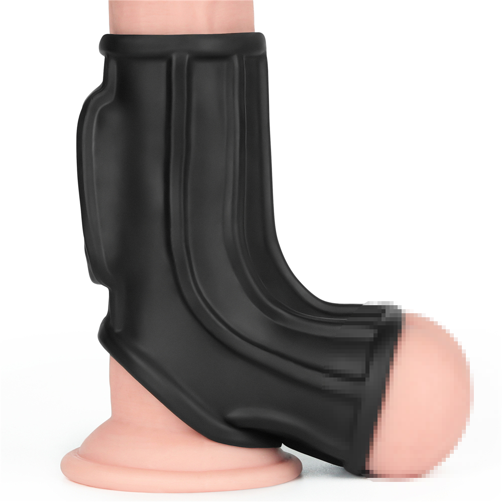 Вибро кольцо Ridge Knights с манжетой для мошонки (черное)