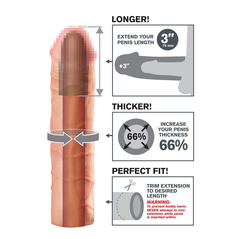 Подходит для длины полового члена до 12,5 см. Насадку можно обрезать под нужную длину.