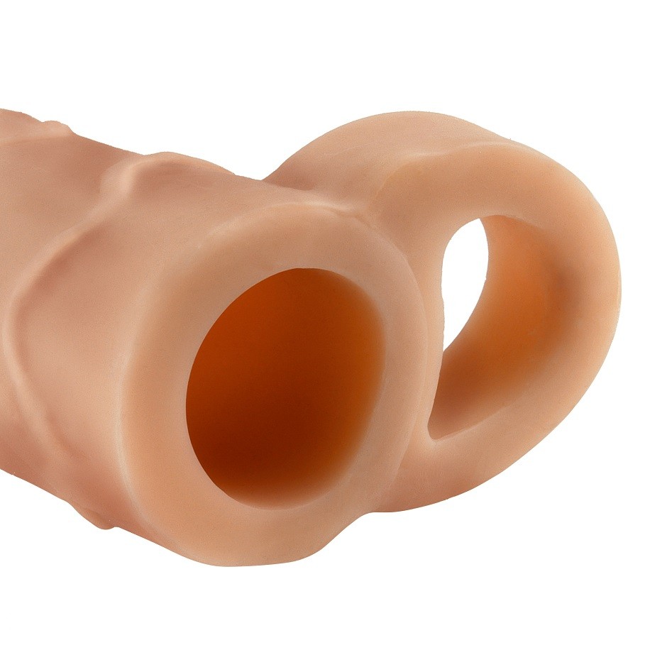 Кольцо на мошонку способствует удержанию насадки на месте.