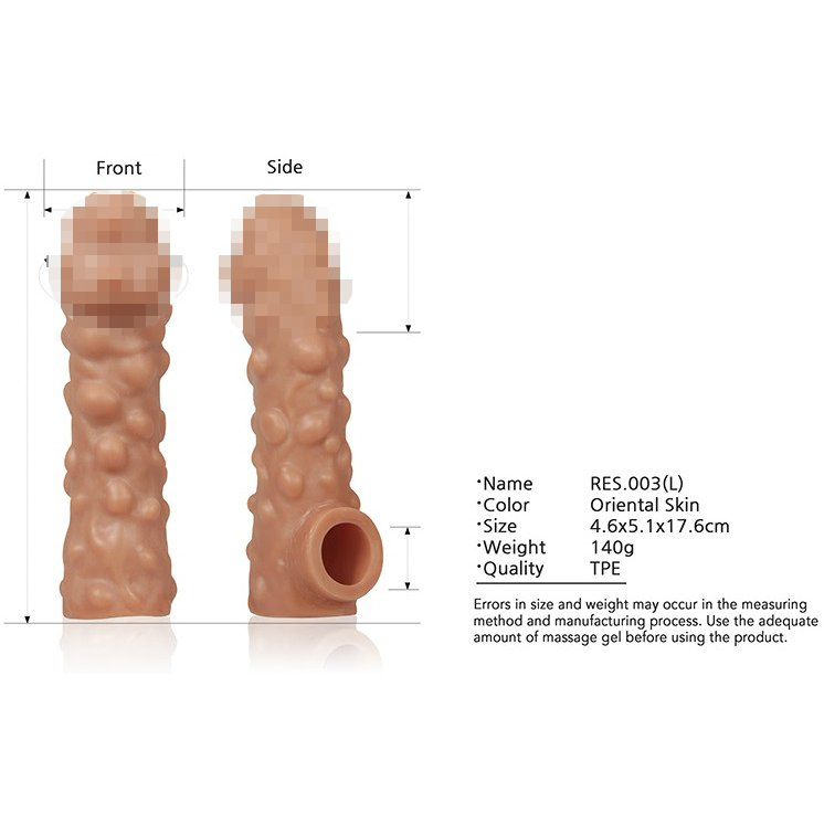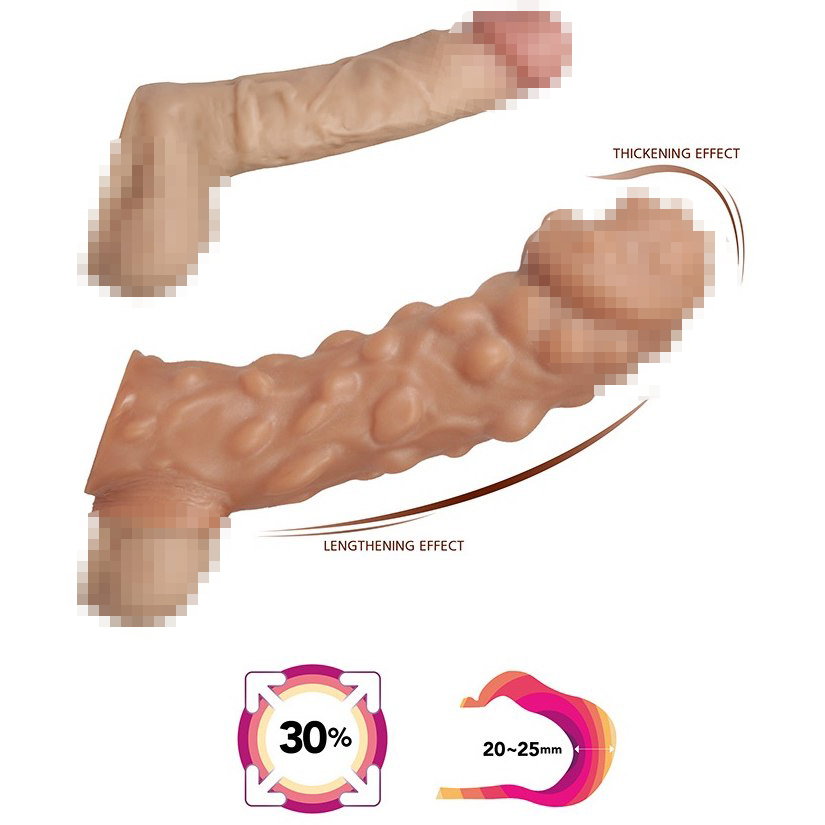 Просто выбирайте более интересный вам рельеф и форму насадки и наслаждайтесь вместе. Насадка очень эластичная, имеет крупные бугорки и рельеф по всей поверхности, для стимуляции эрогенных зон партнера, увеличивает толщину головки и ствола пениса. Специальное круглое отверстие у основания позволяет надежно фиксировать насадку на члене без лишних усилий.