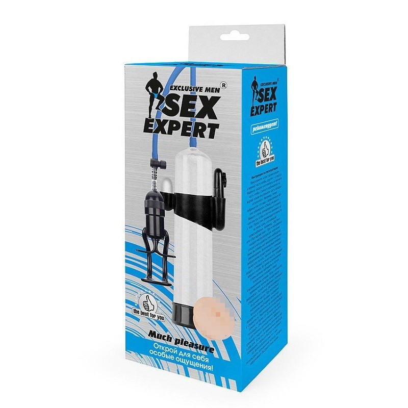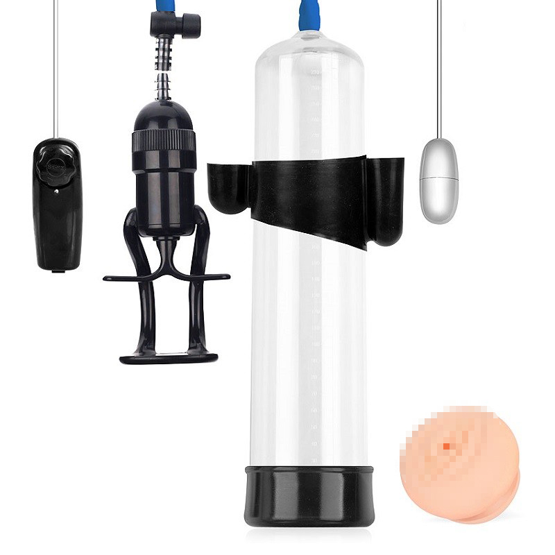 Прочная пластиковая колба с разделительной шкалой, помогающая отслеживать изменения длины полового члена. Специальная насадка-уплотнитель в виде вагины, позволяющая плотно прижимать помпу к телу (позволяющая использовать помпу как маструбатор в дополнении ощущений имеется вибро-яйцо с 1 режимом вибрации).