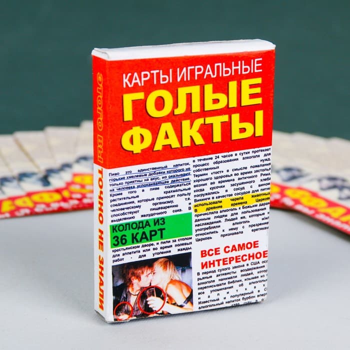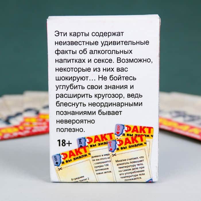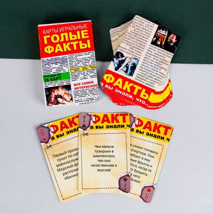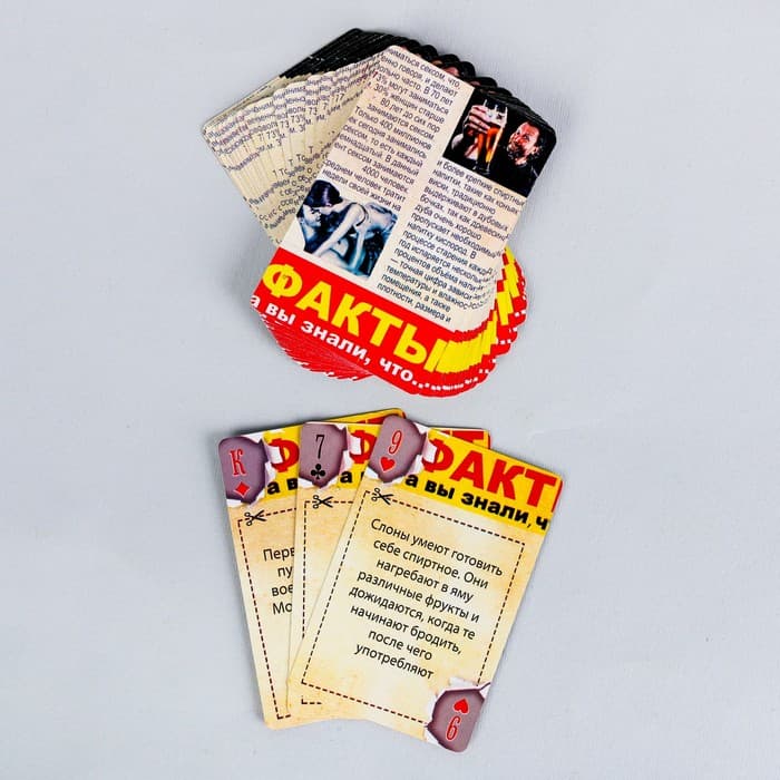 Попробуйте новый формат игральных карт. Кройтесь, переводите, подкидывайте и узнавайте всё и обо всем. Вас ждут интересные факты, о которых вы раньше не слышали! Внутри вы найдёте 36 карт.Только самое интересное!