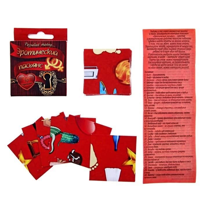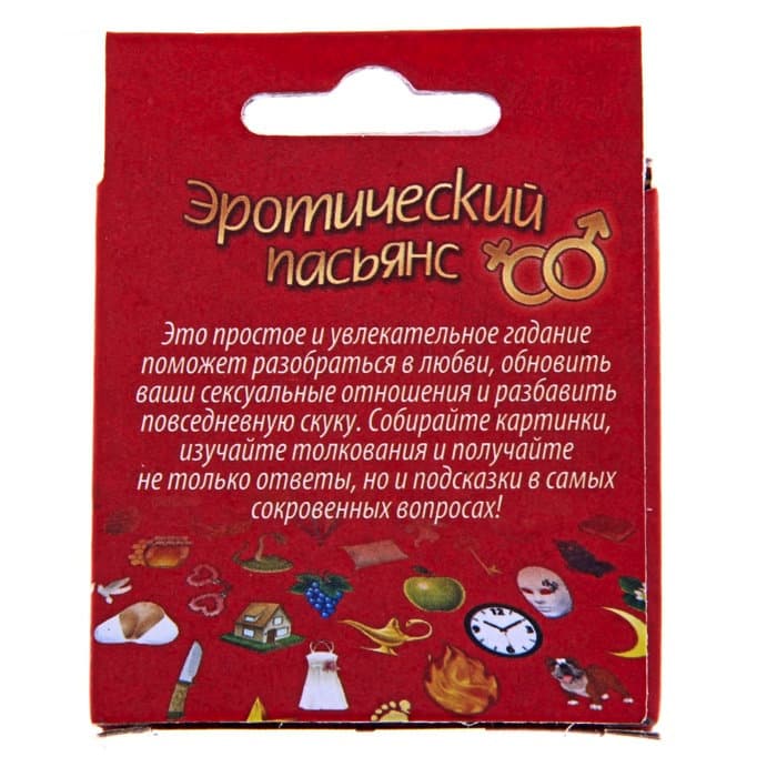 Волнуют сердечные дела? Конечно, да! Можно по пальцам пересчитать людей, которых они не волнуют. Получить ответы на любовные вопросы, обновить сексуальные отношения, разбавить повседневную скуку – все это даст вам 'Эротический пасьянс'. Размер: 6,7 х 6,7 см Материал: картон, бумага