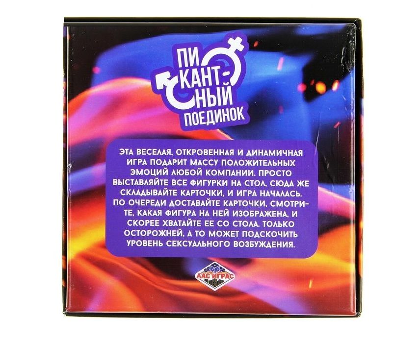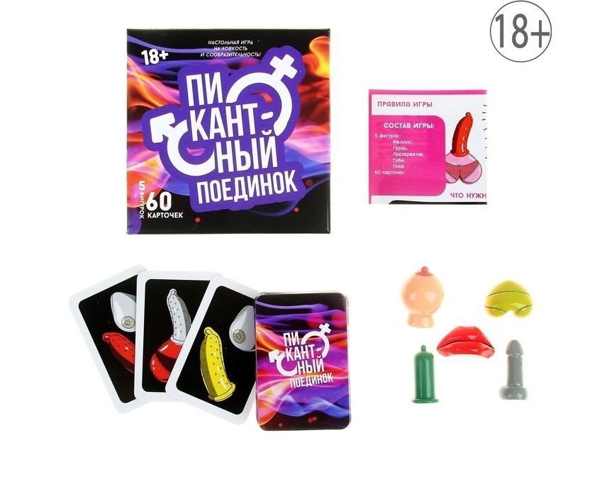 Азарт в крови, глаза горят и к настроению +100! Любая шумная компания не останется равнодушной! Только осторожней, а то от возбуждения уже не будет сил сдержаться! Попа, губы, презерватив... Всё должно быть в зоне досягаемости! Перед началом игры поставьте все пять фигурок на столе по кругу. Самое главное, расположите фигурки так, чтобы всем было удобно до них дотянуться. Все карточки хорошенько перетасуйте и положите рубашкой вверх в одну стопку рядом с фигурками. Все мысли прочь, скорей хватай то, что и остальные не прочь! Первый игрок начинает игру и переворачивает верхнюю карточку из колоды так, чтобы все игроки одновременно ее увидели. А дальше каждый сам за себя, нужно быстрее всех схватить нужный предмет – ту фигурку, которая изображена на карточке! Кто сделает это первым, забирает карточку себе, а фигурку необходимо вернуть обратно. Если на карточке нет ни одной правильной фигурки нужного цвета, то важно быстро схватить фигурку, которой нет на карте, или цвет, которого там тоже нет. Победителем станет