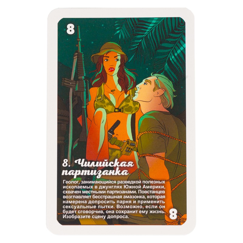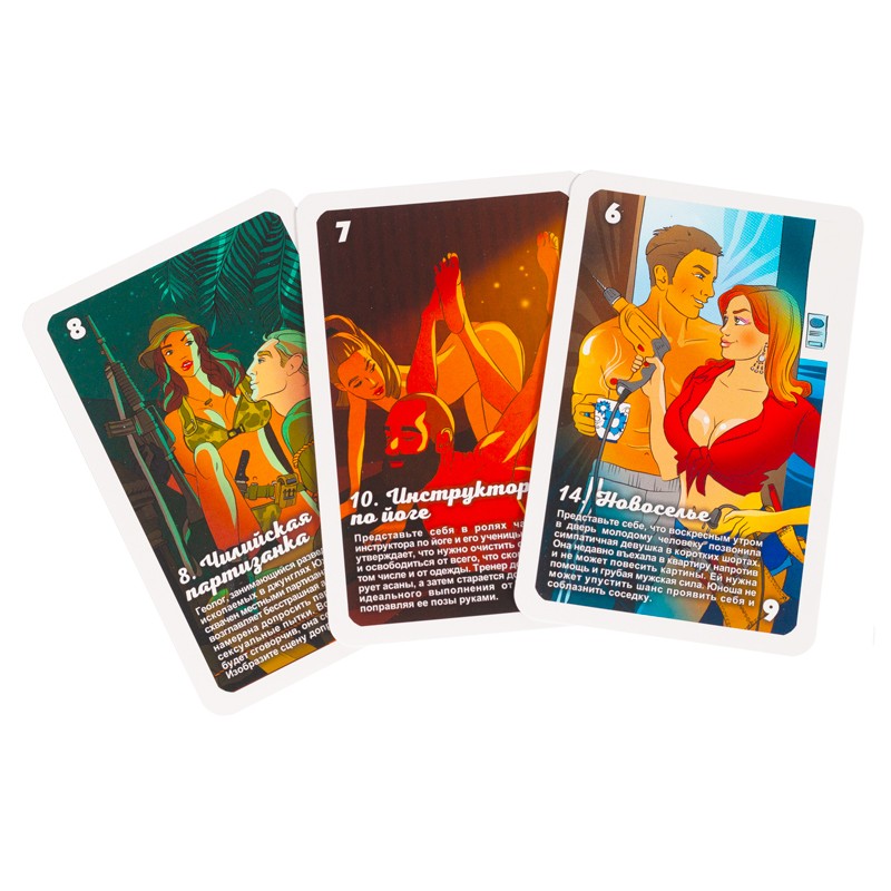 В игру играют вдвоем. В комплект поставки входят 40 карт номиналом от 1 до 10, каждая из которых содержит задание. Цель игры - первым сбросить все карты. Игра ведется до трех побед, после чего победитель выбирает задание, которое пара может выполнить.
