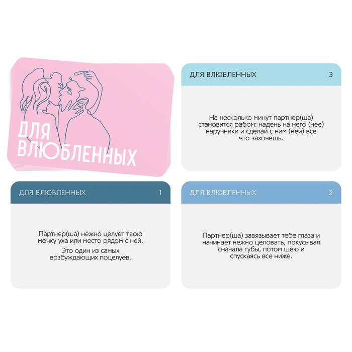 Разложите карточки рубашкой вверх в четыре ряда. Нужно найти парные карточки с одинаковой картинкой. По очереди переворачивайте карточки: совпали отлично, тогда берите карточку себе и выполняйте пикантное задание на ней. Не совпали, тогда передавайте ход своей второй половине.