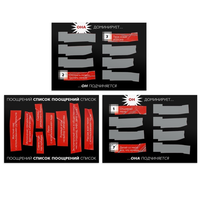 Обменивайтесь ролями, стирайте скретч-слои, подчиняйтесь или приказывайте. Помните, если хорошо исполнять задания, то вас будет ждать долгожданная награда.
