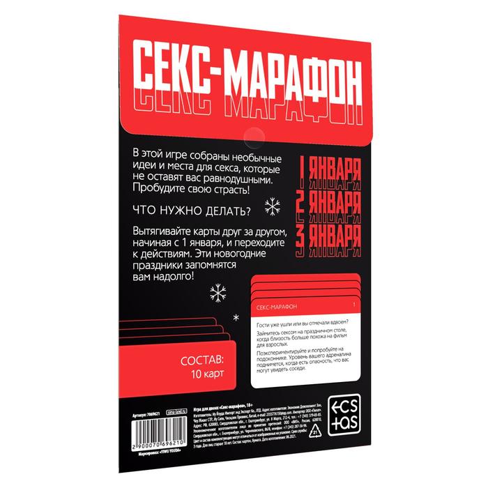 В этой игре собраны необычные идеи и места для секса, которые точно не оставят вас равнодушными. Вытягивайте карты друг за другом, начиная с 1 января, и переходите к действиям. Эти новогодние праздники запомнятся вам надолго!