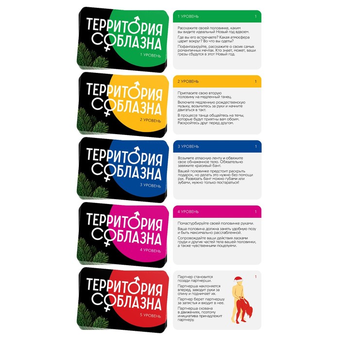 «Он» — ходит мужчина. Он вытягивает карту из выбранной колоды (начинать лучше с 1-го уровня), вслух зачитывает задание и выполняет его.