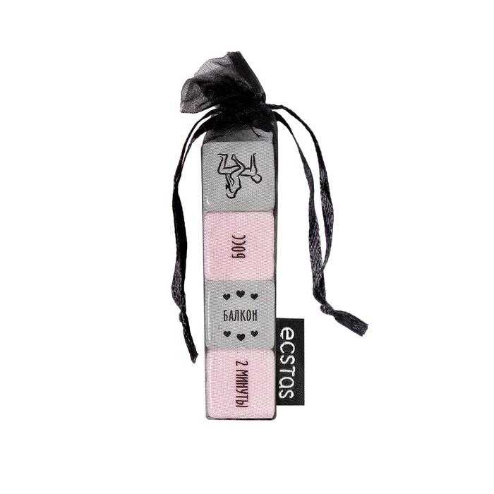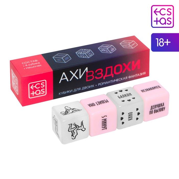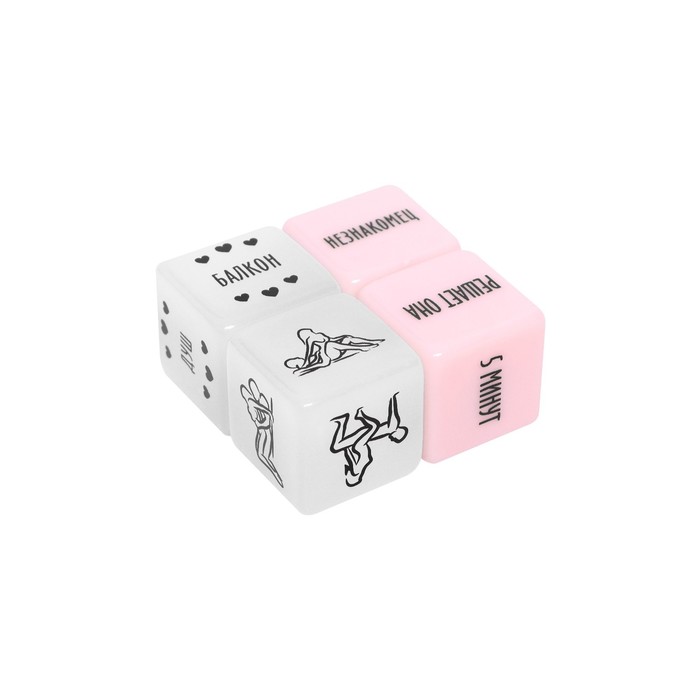 Внутри вас ждёт четыре кубика. Один из них определит роль для мужчины или девушки, какова будет роль второго партнёра, вы решаете сами. Второй подскажет место, третий - позу, а четвёртый - время.