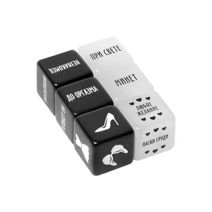 Один из них определит роль мужчины или девушки, второй - атрибут одежды, который должен быть на девушке, третий - вид наслаждения для него, четвёртый - для неё. Пятый подскажет, как доставить партнёру наслаждение, шестой - время, за которое это нужно сделать.