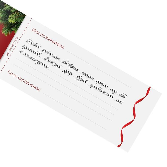 Перед вами чековая книжка, которая подарит незабываемые впечатления в новогодние праздники. Выписывайте чеки и наслаждайтесь исполнением желаний вместе. Этот Новый год вы запомните надолго!