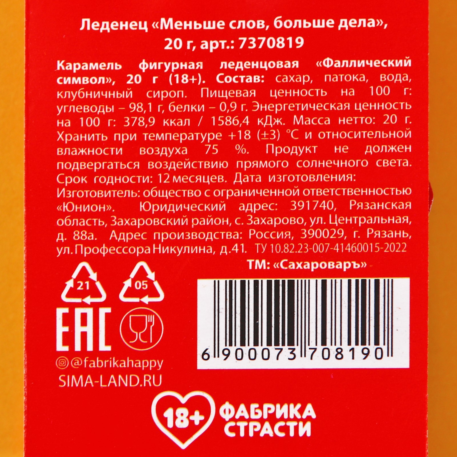 Леденец «Меньше слов, больше дела», вкус: клубника, 20 г.