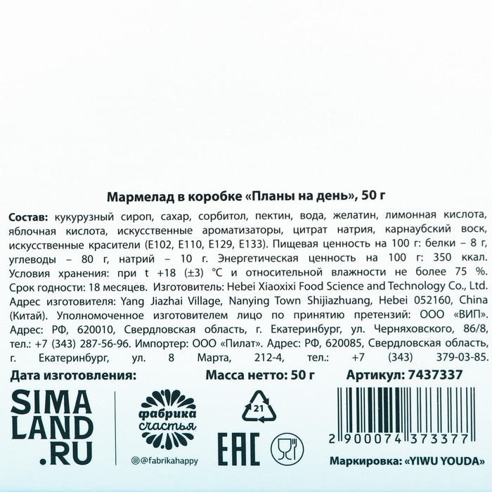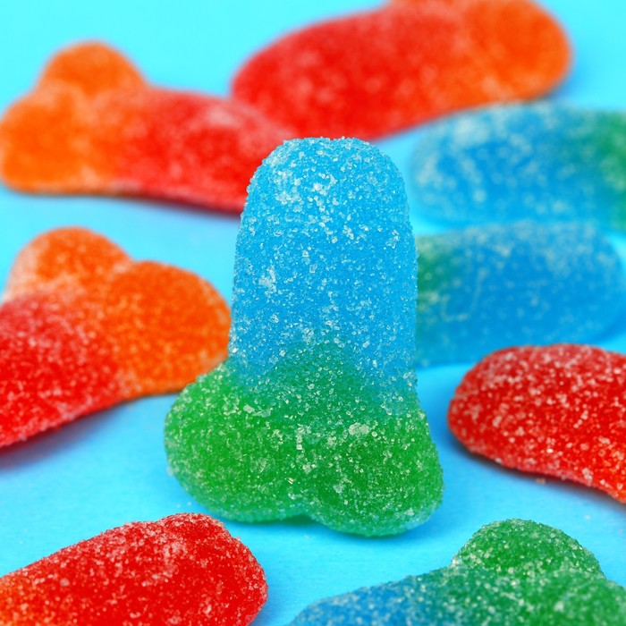 Состав: кукурузный сироп, сахар, сорбитол, пектин, вода, желатин, лимонная кислота, яблочная кислота, искусственные ароматизаторы, цитрат натрия, карнаубский воск, искусственные красители (Е102, E110, E129, E133).