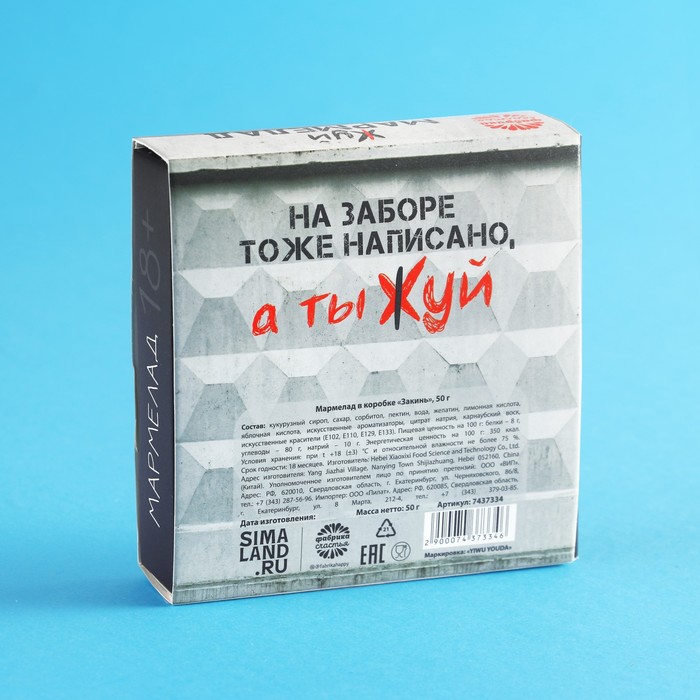 Состав: кукурузный сироп, сахар, сорбитол, пектин, вода, желатин, лимонная кислота, яблочная кислота, искусственные ароматизаторы, цитрат натрия, карнаубский воск, искусственные красители (Е102, E110, E129, E133).