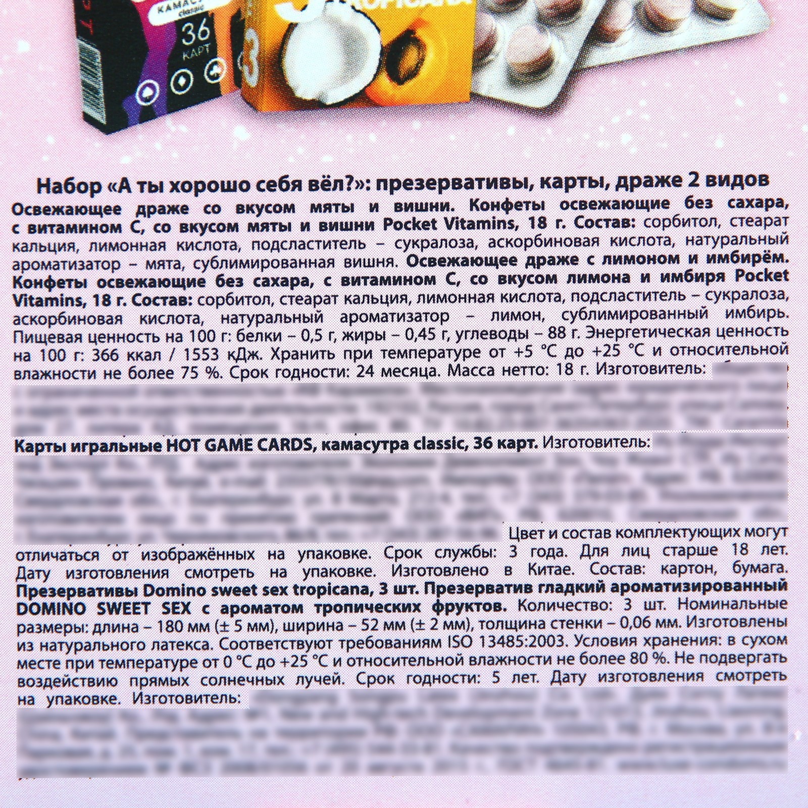 Состав: сорбитол, стеарат кальция, лимонная кислота, подсластитель – сукралоза, аскорбиновая кислота, натуральный ароматизатор – мята, сублимированная вишня.