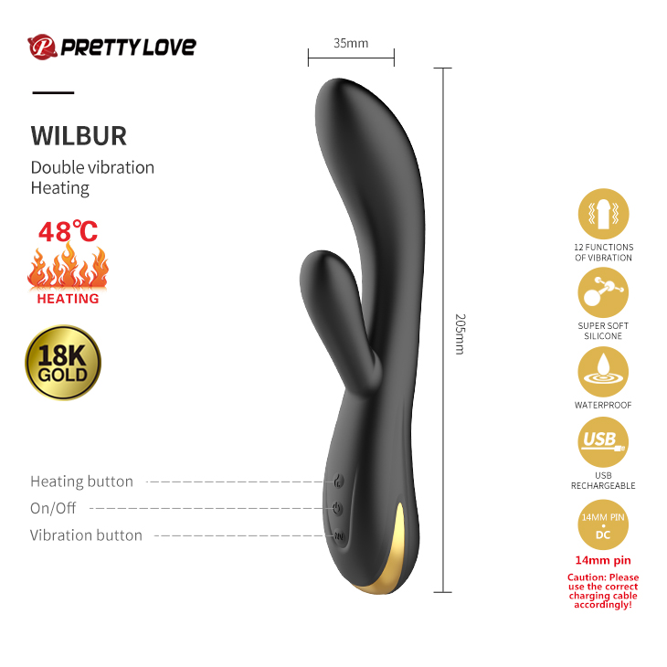 2. Вибромассажер "Wilbur" оснащен двумя мощными вибромоторами, один из которых установлен в головке, а второй в клиторальном отростке. Его особенностью является функция нагрева до 48 градусов по цельсию. Включите его перед использованием, дайте ему разогреться и в бой. Данный казанова не оставит Вас равнодушной, а его тепло унесет Вас на седьмое небо.