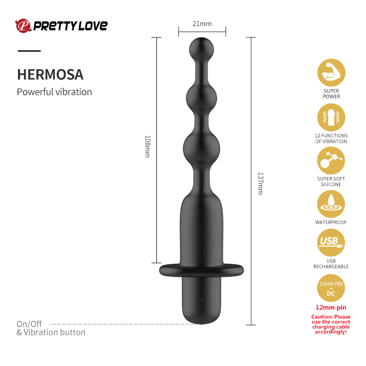 12. Оригинальный вибромассажёр "Hermosa" для любителей особых удовольствий. Выполнен в виде анальной «ёлочки». Такая форма интимного аксессуара даёт дополнительный стимулирующий эффект. Может использоваться соло или в парной любовной игре. Изготовлен из мягкого материала, дарящего приятные тактильные ощущения. Вибрация обеспечивается с помощью съёмной вибропули.