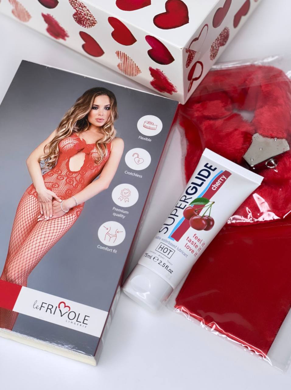 5) Боди-комбинезон красный с кружевом и доступом S-L (Этот красный боди-комбинезон с кружевом и доступом обязательно добавит остроты к вашим отношениям. Очаровательное кружево и кокетливый вырез подчеркнут вашу женственность и сексуальность. Размер универсальный - от S до L).