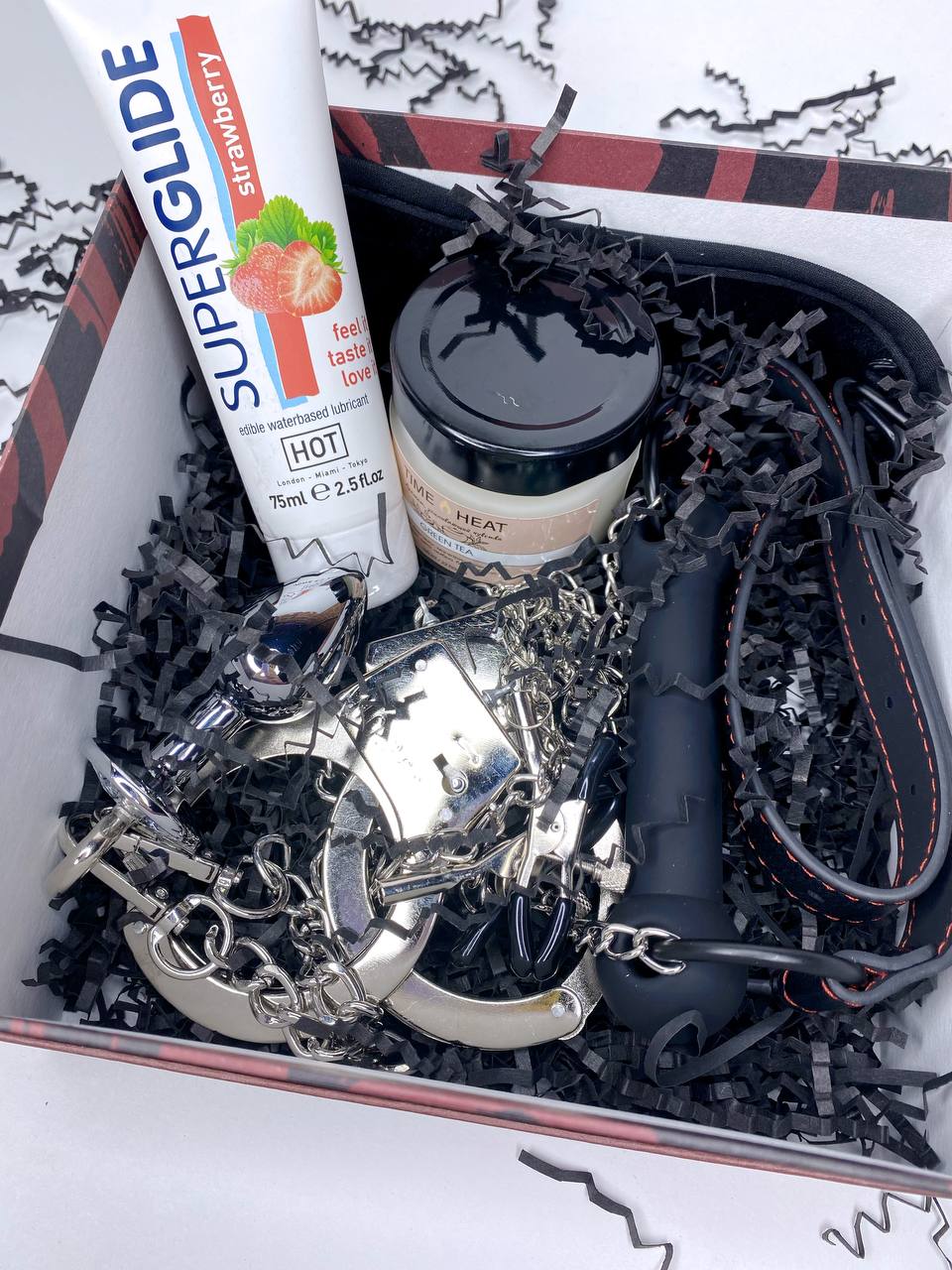 6) Вкусовая смазка SupreGlide «Клубника», 75 мл (Отлично смягчает и увлажняет кожу и интимную область, устраняет неприятные ощущения при сухости и повышенной чувствительности слизистой оболочки. Съедобный скользящий гель со вкусом клубники. Смазка высочайшего качества не пачкает одежду, легко смывается водой, а также совместима с любыми изделиями из латекса и секс-игрушками).
