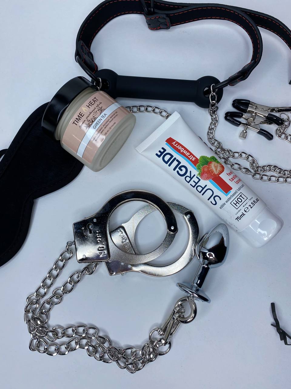 2) Наручники металлические и анальная пробка (БДСМ набор который впечатлит любого, даже самого искушенного пользователя БДСМ атрибутики! Получите незабываемые впечатления и ощущения от этого набора! Воплотите в жизнь все ваши самые сокровенные желания и мечты, получите новый уровень от секса и уйму ярких оргазмов. Удобное крепление не застанет вас врасплох, т.к при желании цепи отсоединяются от пробки и вы можете пользоваться набором по отдельности!).