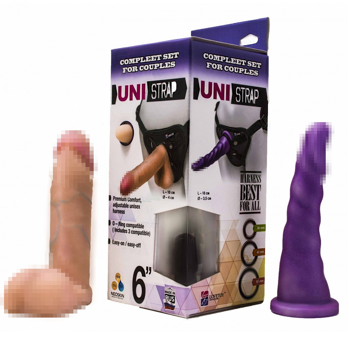 Имеет две насадки. Фаллоимитатор в виде члена с мощной головкой выполнен из материала неоскин, который своей нежной поверхностью напоминает кожу на настоящем пенисе. Имеет ярко выраженные венки и аккуратную мошонку.