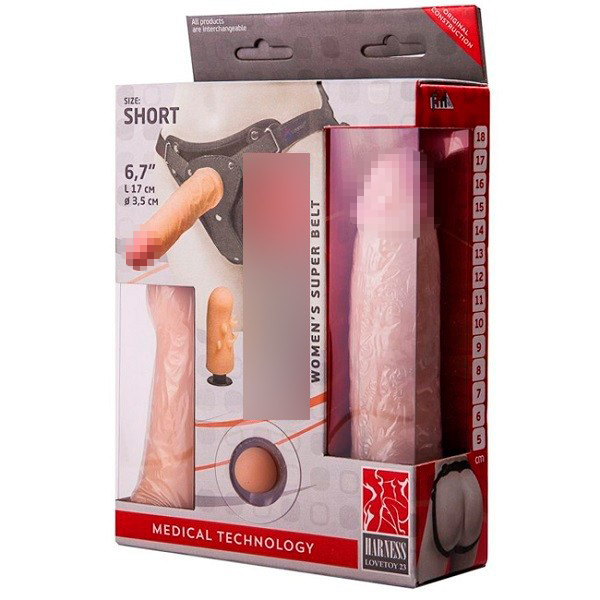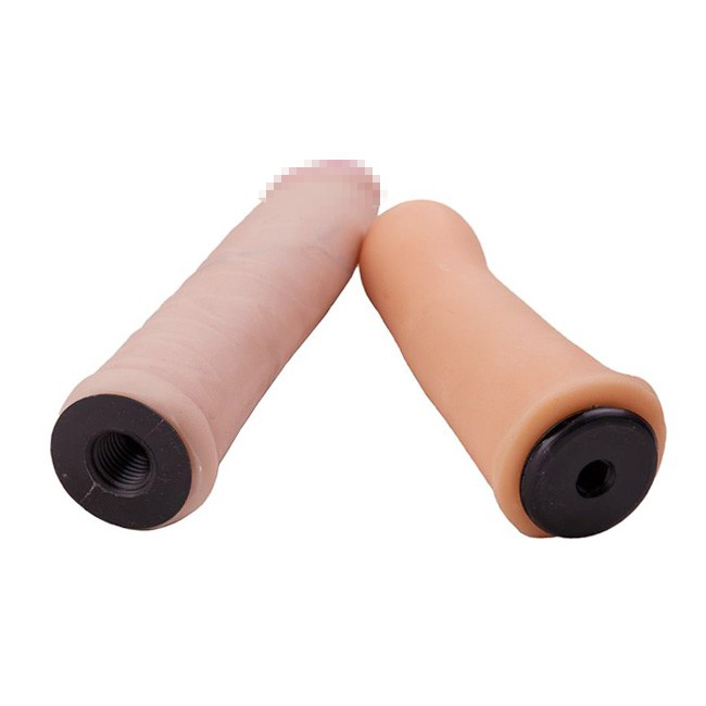Два отверстия: одно внешнее – для любых насадок, на которые только способна ваша фантазия, второе – внутреннее, для вагинального проникновения. В данном комплекте две насадки разных размера и формы.