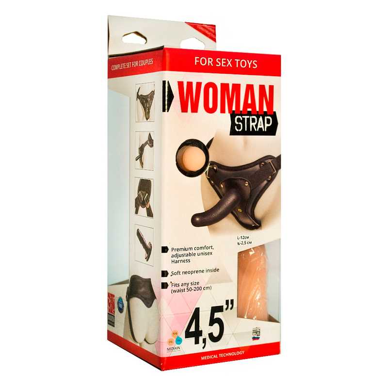 Двойной фаллоимитатор на поясе для женщин. Изготовлен из материала 'неоскин'- новое поколение 'кибер-кожи'. Насадка для страпона черного цвета. Имеет форму члена, не имеет швов. Пояс снабжен регулируемой вагинальной насадкой (телесного цвета), позволяющей адаптировать размеры пояса с индивидуальными особенностями тела женщины. Соединительные параметры стандартны. Общая длина – 12 и 10 см, максимальный диаметр - 2,5 и 3,5 см. Упаковка: картонная коробка с принтом