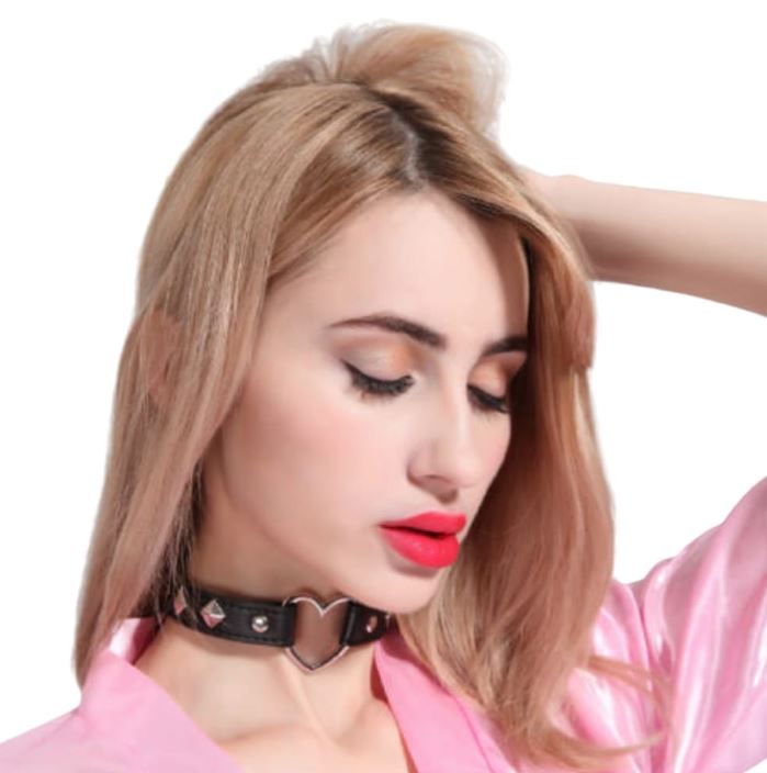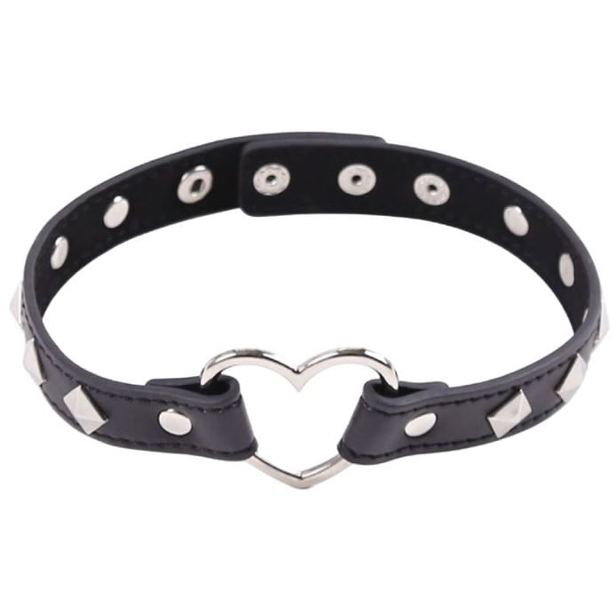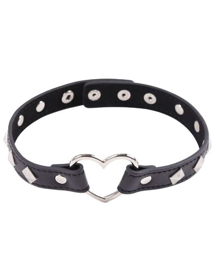 Эстетичный чокер, нежный и жесткий одновременно, прекрасный вариант для тех, кто решил попробовать игру в подчинение. Оригинальный черный чокер, декорированный металлическим сердцем и заклепками в форме ромбов.