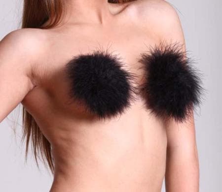 Невероятно сексуальный аксессуар для раскованных и уверенных в себе женщин - пэстис украшенный пухом. Эта яркая деталь эротического образа, приятно удивит Вашего любимого мужчину. Пэстис может быть не только эротическим аксессуаром в Вашей спальне, но и надежным защитником Ваших сосков от воздействия вредного ультрафиолета, как в солярии, так и на пляже. Так же пэстис используют в виде элементов нижнего белья, под прозрачной одеждой. Пэстис прочно приклеивается и идеально сидит на груди, при помощи специальной клейкой ленты. Уход за пэстис для их многократного использования: 1. Перед использованием следует обратить внимание на кожу груди. Она должна быть чистая без следов лосьона, пудры, кремов или других косметических средств. В противном случае клейкая поверхность засорится и будет плохо приклеиваться при следующем использовании. 2. На груди очень нежная кожа. Чтобы ее не растянуть, пэстис нужно снимать аккуратно. 3. После использования необходимо промыть теплой водой внутреннюю поверхность пэстис, затем вы